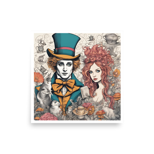 Mad Hatter Whimsical Drawing Photo Paper Poster